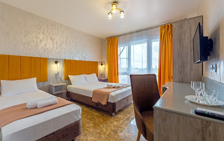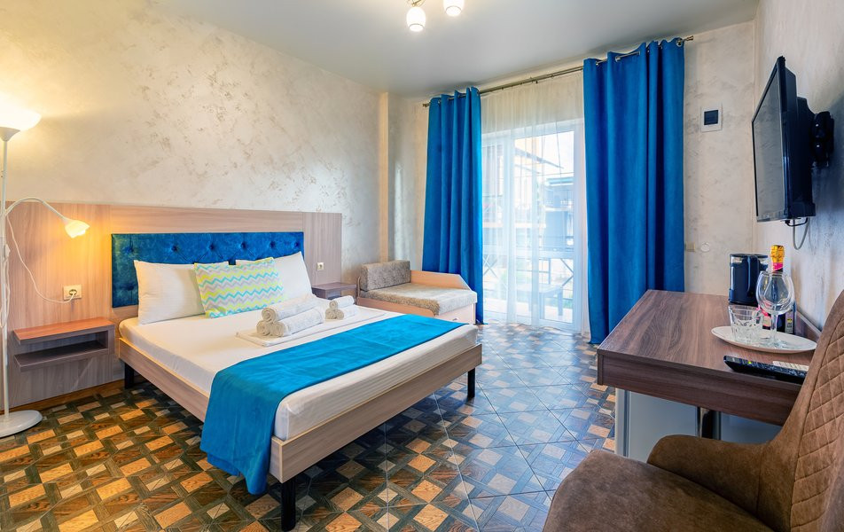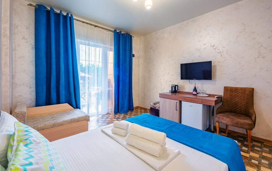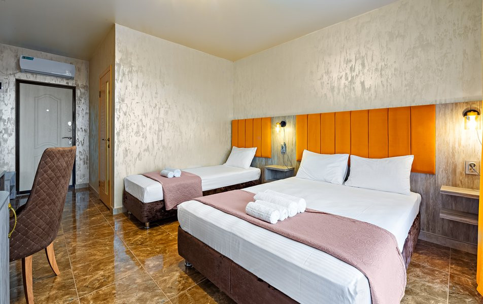 - Двухместный стандарт с террасой с доп. местом —22 кв.м. 1 этаж. Номер с отдельным входом. Размещение до 3 гостей.