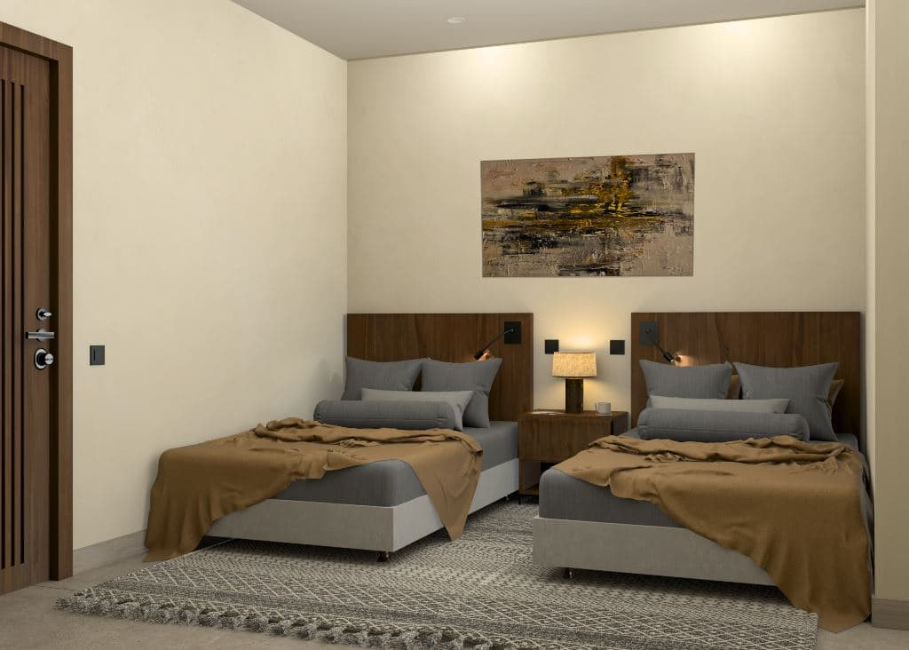 - Family Suite Pool View — 45 кв. м, в номере с видом на бассейн двуспальная кровать и две односпальные кровати. Число гостей — до 4 человек
