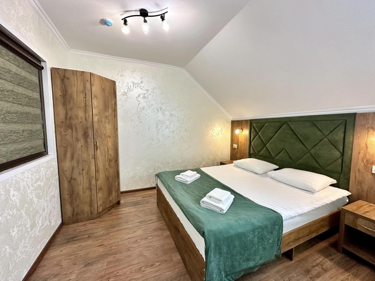 - Стандарт Мансардный — 22 кв. м, двуспальная кровать и раскладное кресло