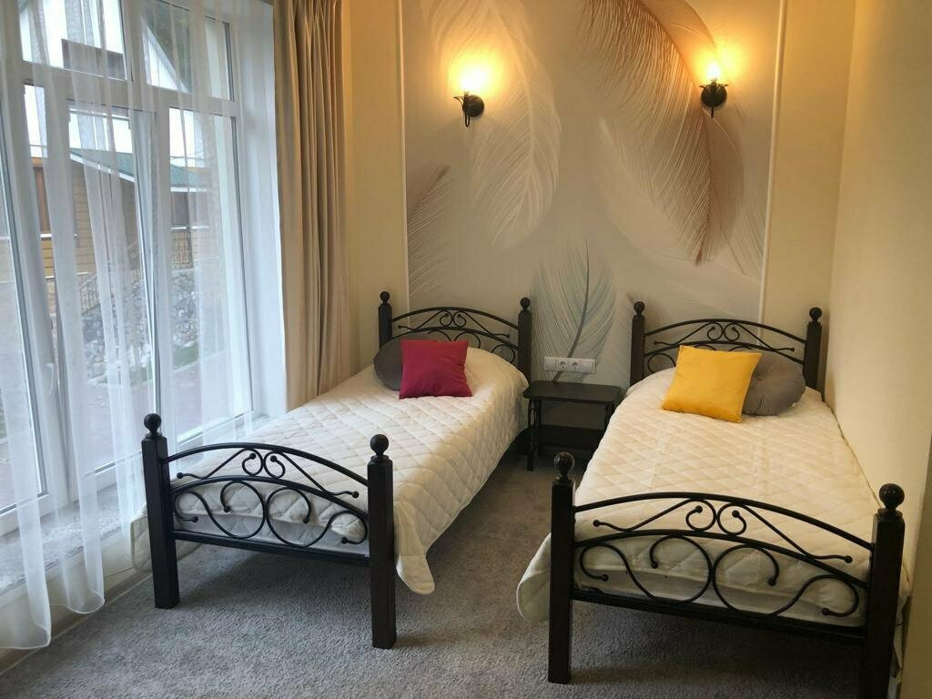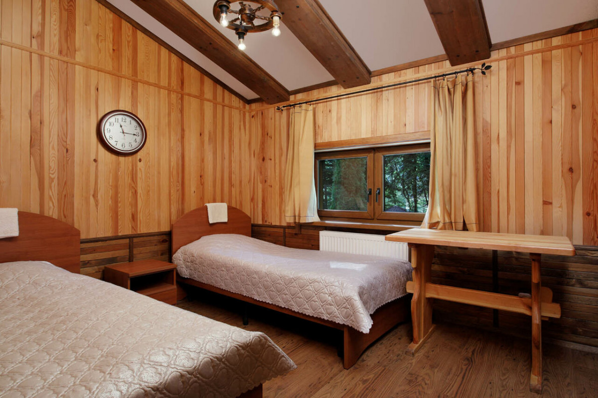 - двухместный стандарт в мансарде — двуспальная кровать. Площадь 25 кв. м.