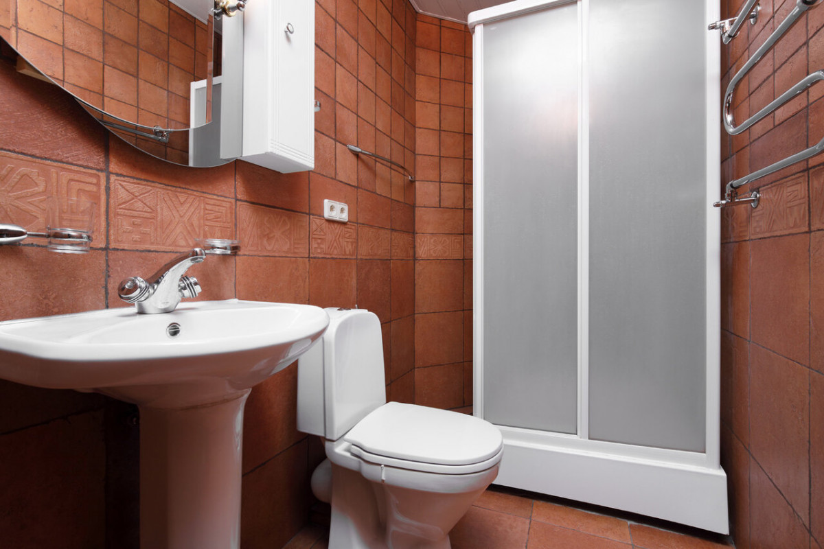 - ванная комната с душевой кабиной и туалетом