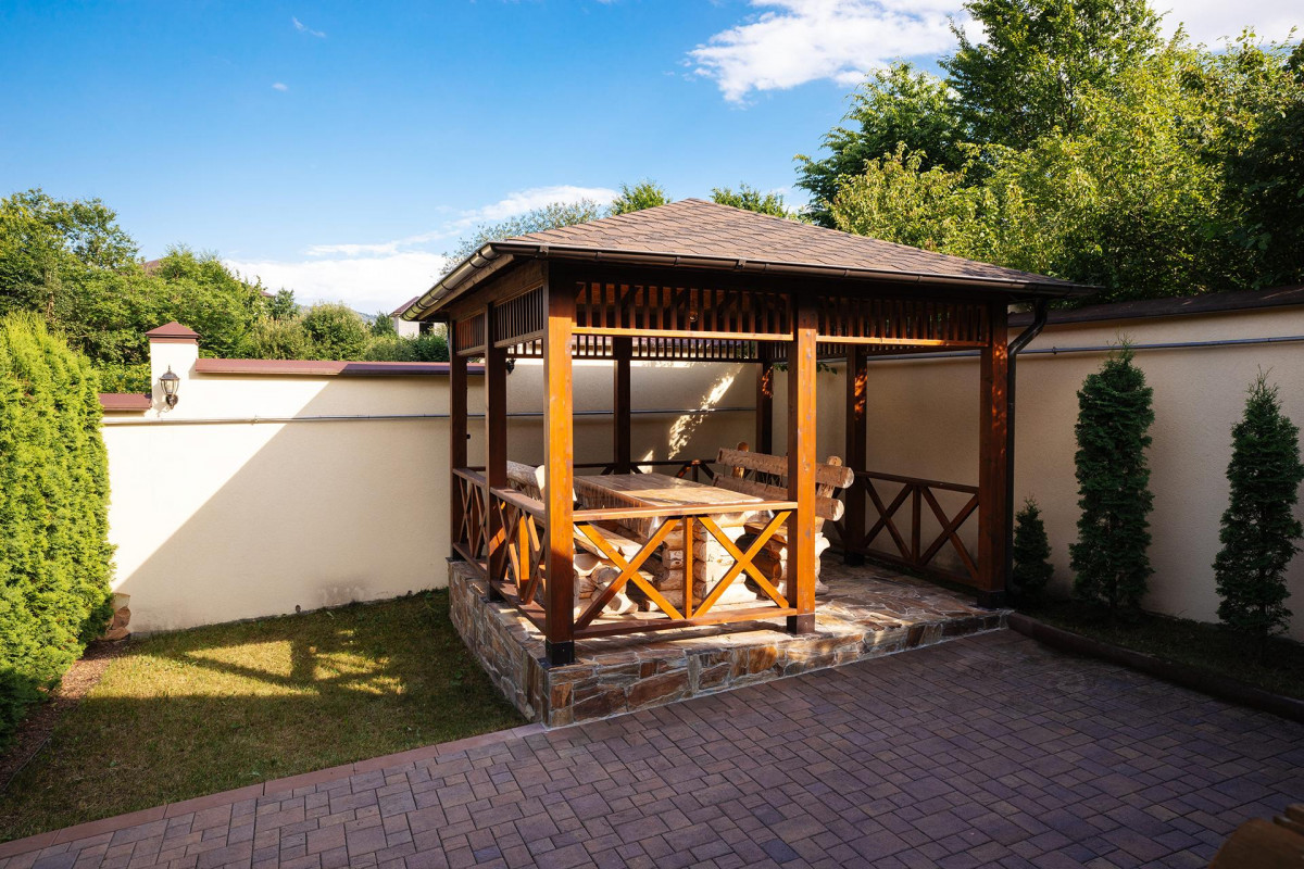 • Стандарт: 30 кв м, отдельный домик, в кухонной зоне только раковина и чайник (плиты нет). В распоряжении гостей персональная беседка в уютном дворе