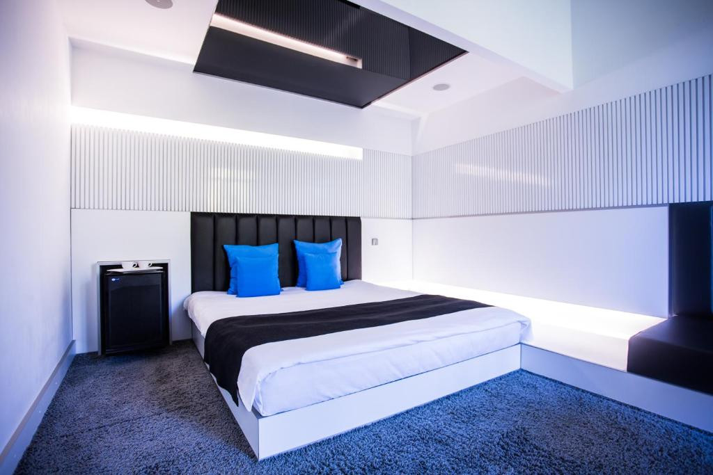 - Стандарт: 20 кв. м, максимально размещение: 2 + 1 гость. Уютный просторный номер с балконом и душевой с прозрачными стенками и RGB-подсветкой