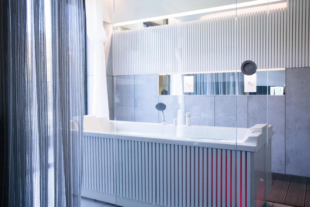 - Супериор: 35 кв. м, максимально размещение: 2 + 2 гостя. Просторный номер без балкона, с панорамными окнами. Номер данной категории оснащен шикарной ванной с подсветкой, а также тропическим душем. Ванна установлена в просторной комнате со стеклянными стенками