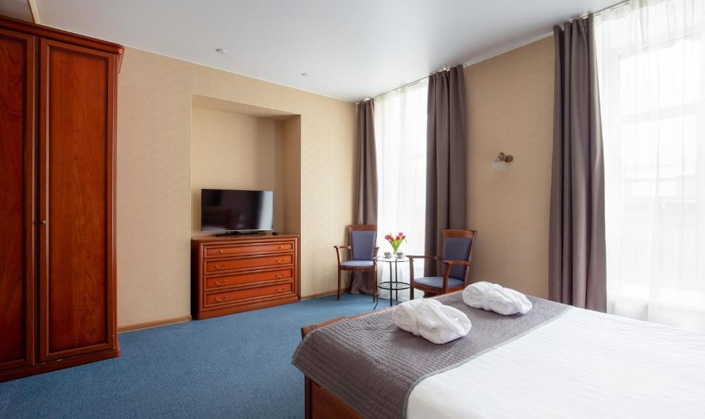 - Люкс — 20 кв. м. Кровати: 1 двуспальная