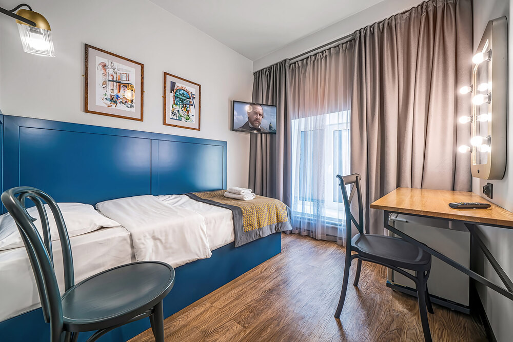 - Стандартный 2-местный 1-комнатный DBL — 9 кв. м, кровать двуспальная