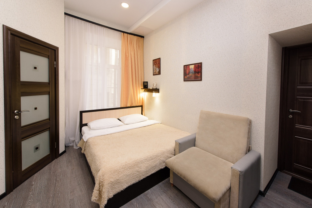 - Эконом 1-местный: 14 кв м, 1-комнатный, 1 осн место, кровать односпальная