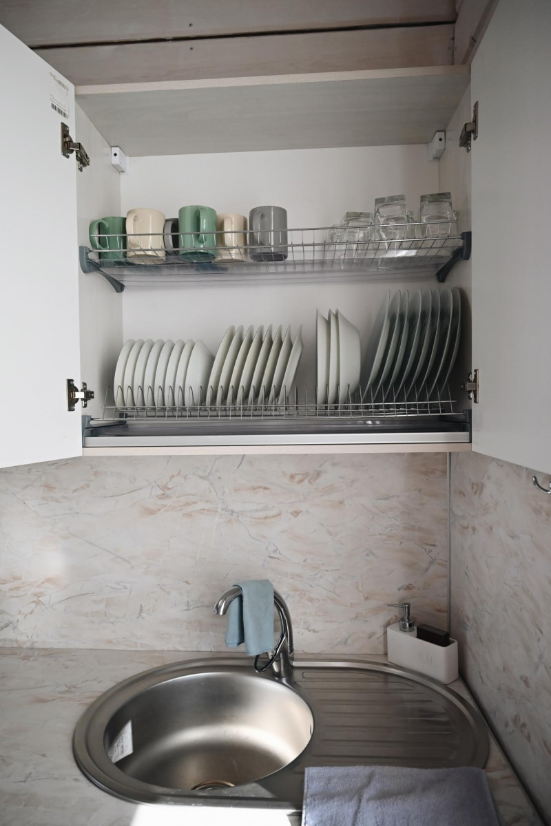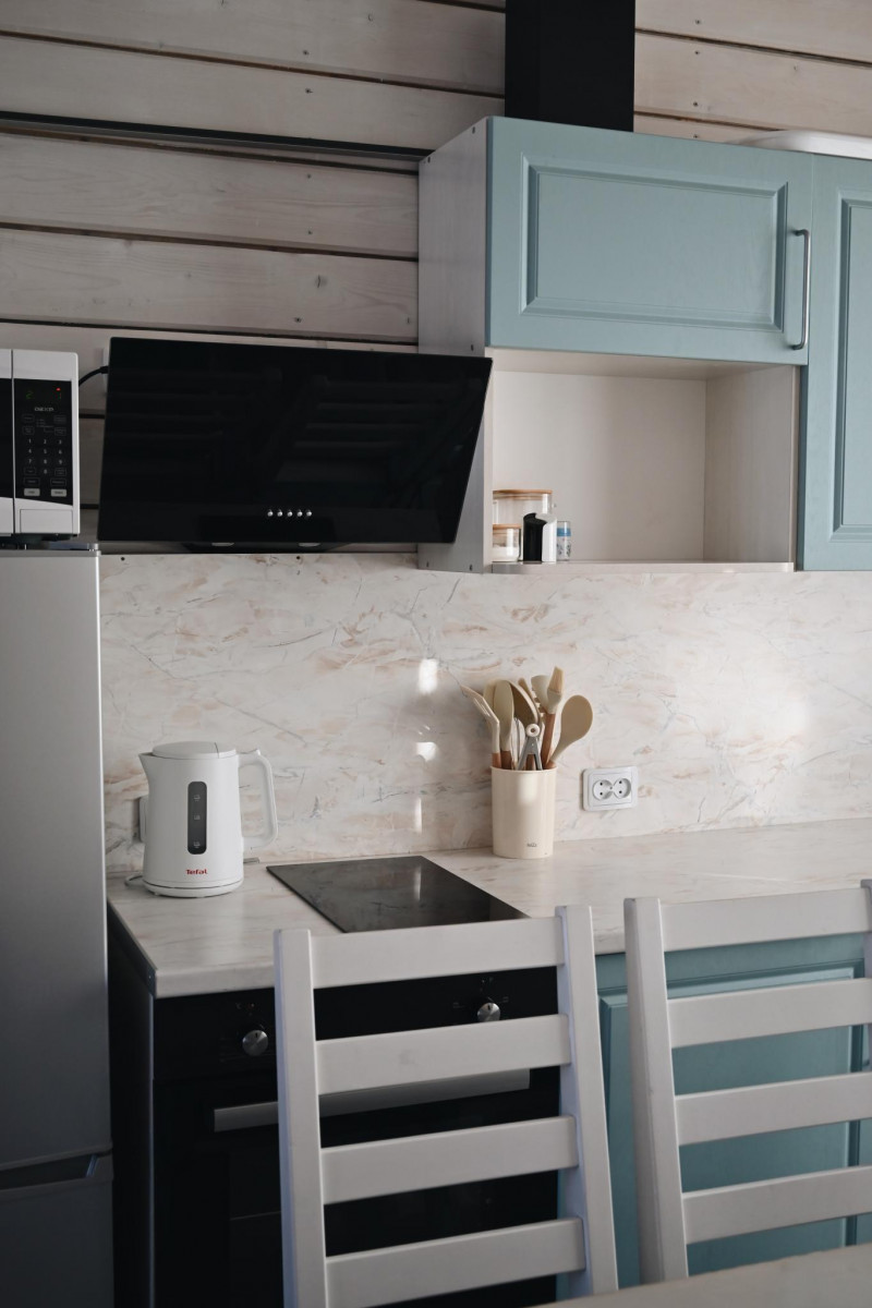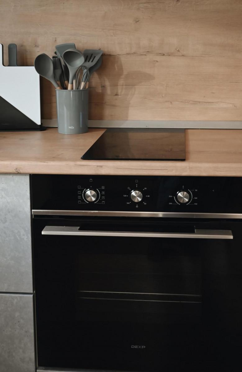 • кухня-гостиная (холодильник, электрическая плита и духовой шкаф, микроволновая печь, чайник, посуда)