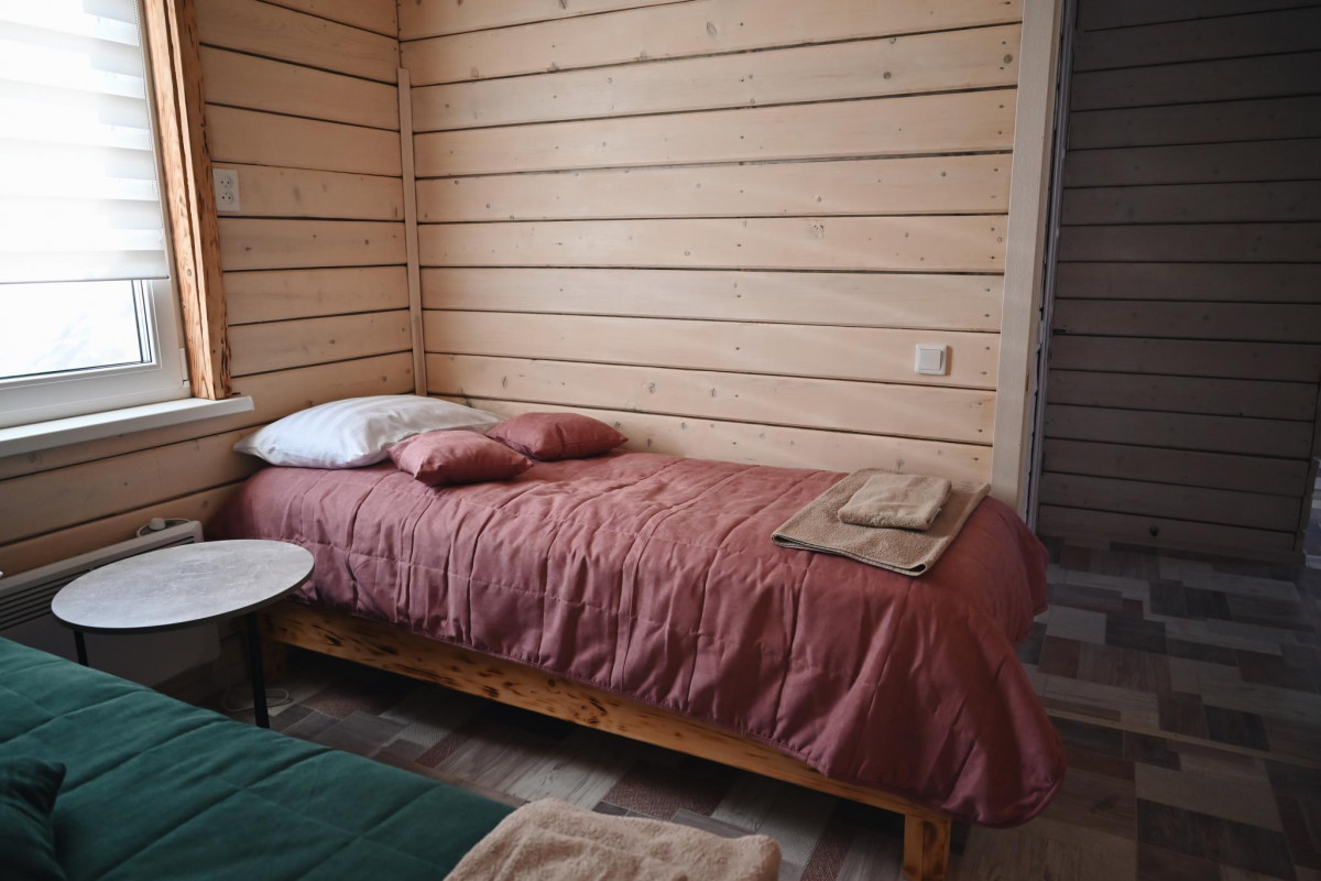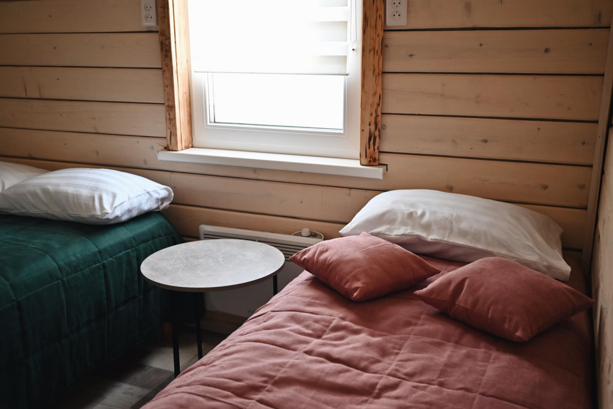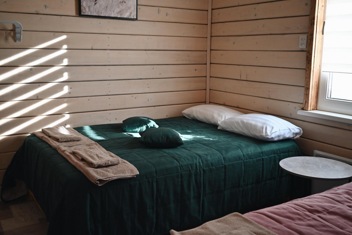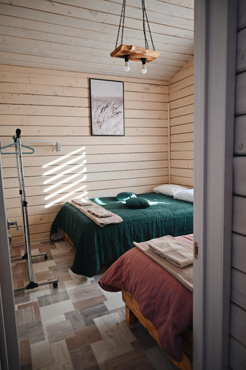 • Коттедж: до 8 гостей, изолированные комнаты на 6 человек (в каждой комнате двуспальная кровать +односпальная кровать). Так же 2 дополнительных места в гостиной на диване