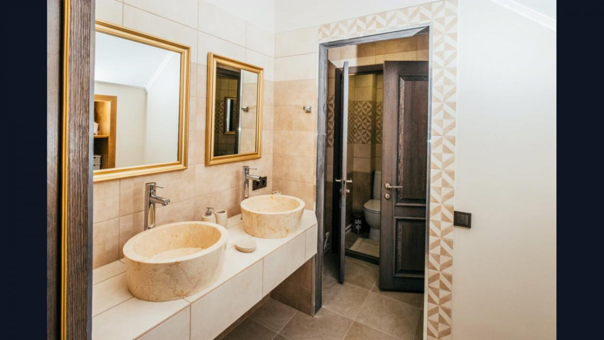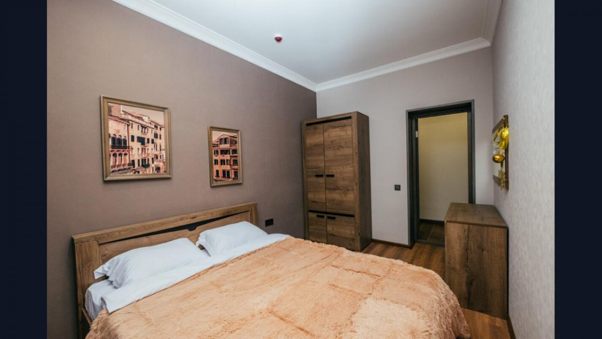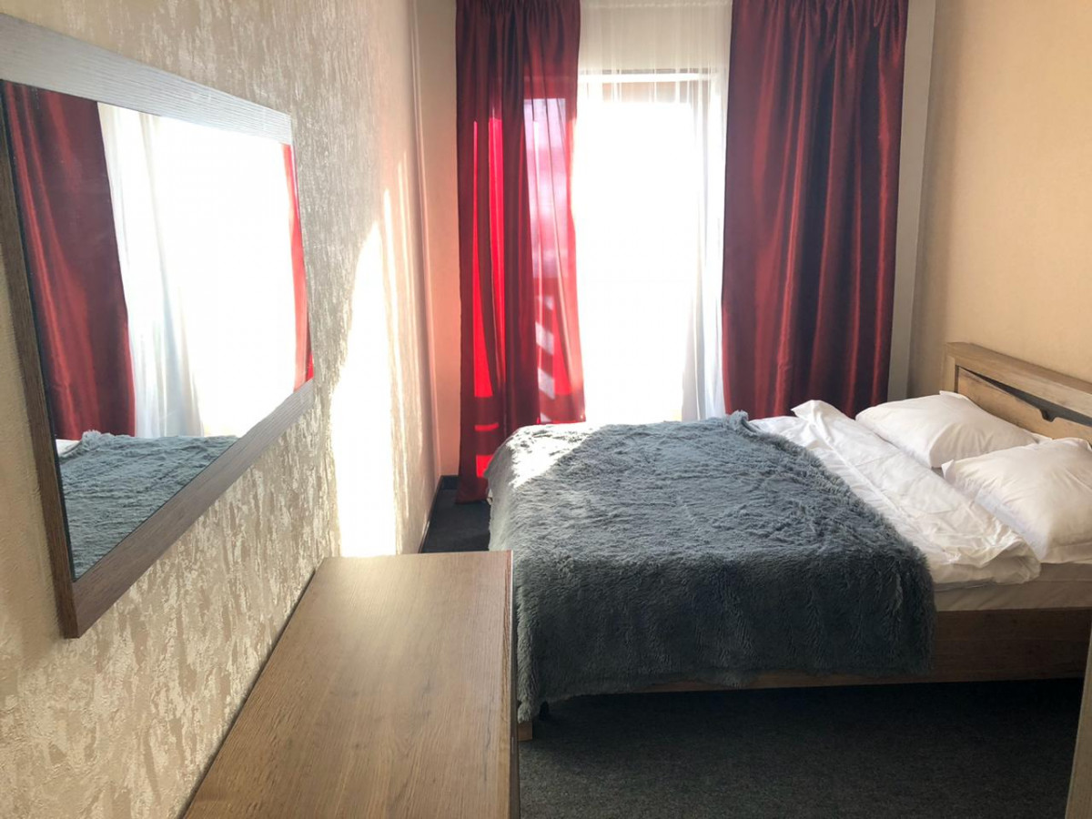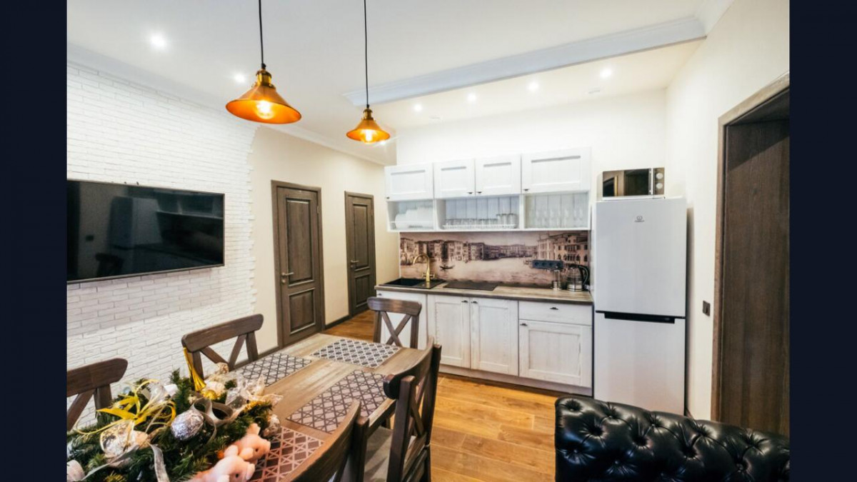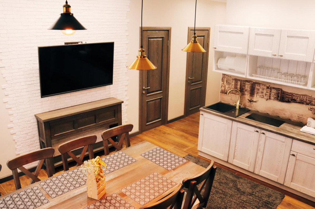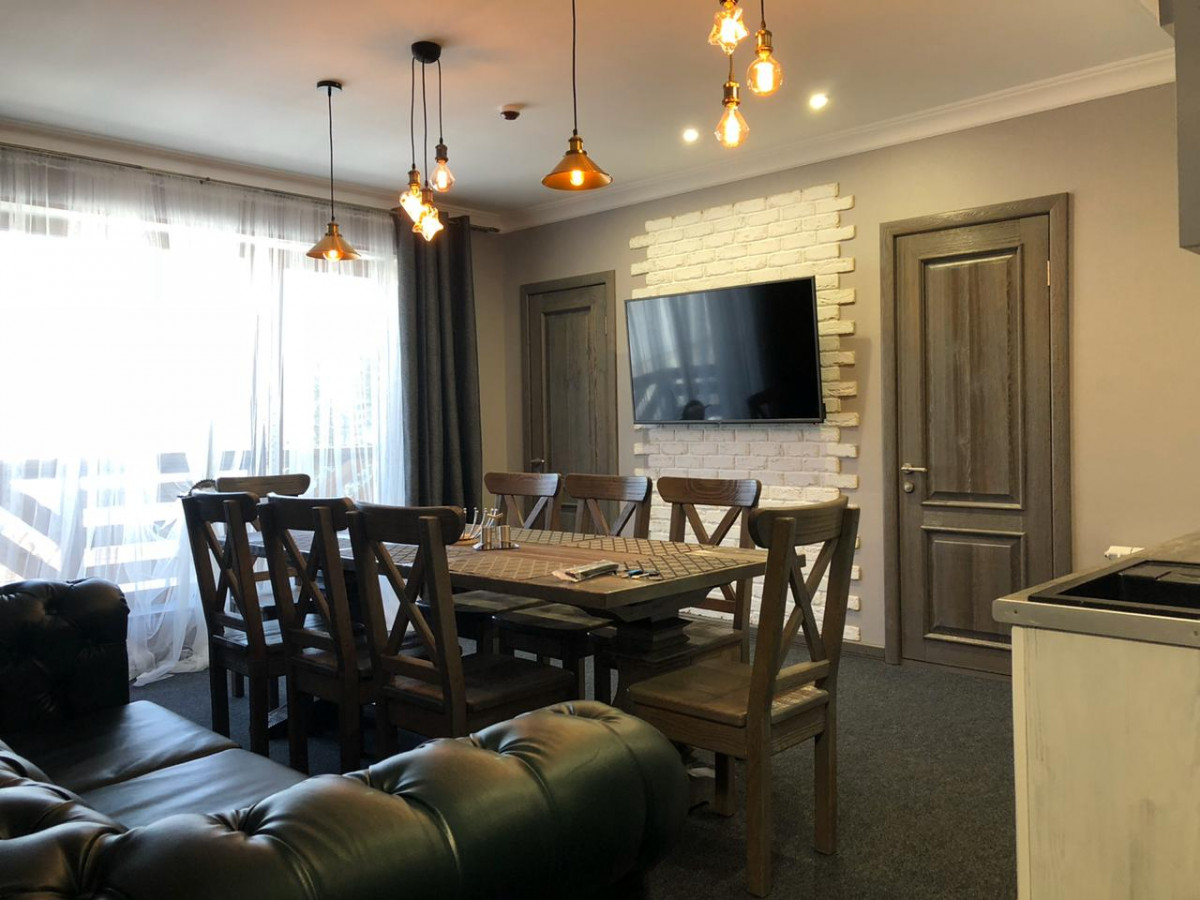 Апартамент 1: 4 спальни, из них: 3 спальни с двуспальной кроватью. 1 спальня с двумя односпальными двух-ярусными кроватями, обеденная зона, зона отдыха, кухонная зона. На 12 гостей (10 основных спальных мест и 2 дополнительных места)