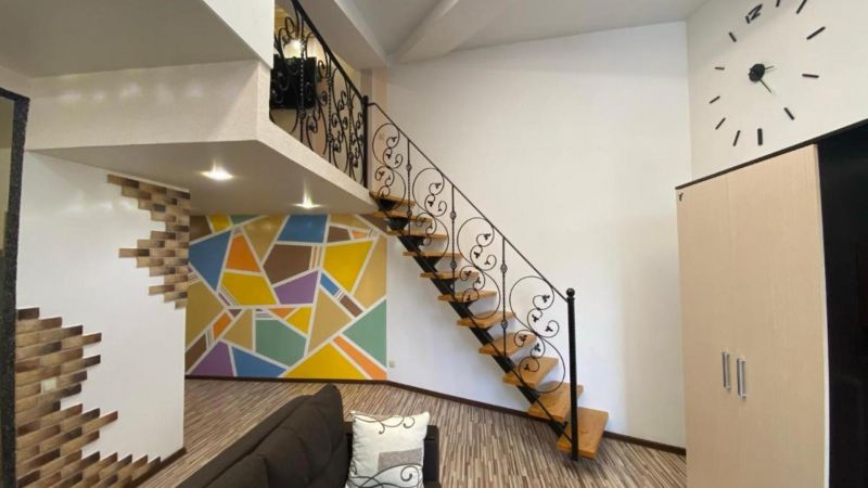 - Апартаменты (50 кв. м, 2 комнаты, двуспальная кровать с удобным матрасом и гипоаллергенным постельным бельем, двуспальный диван, вместимость до 5 мест)