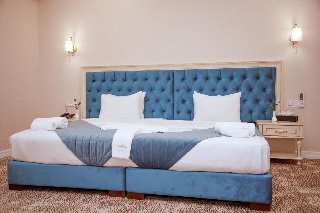 - Стандартный двухместный — 35 кв. м, в номере две односпальные кровати или одна двуспальная. Число гостей — до 2 взрослых