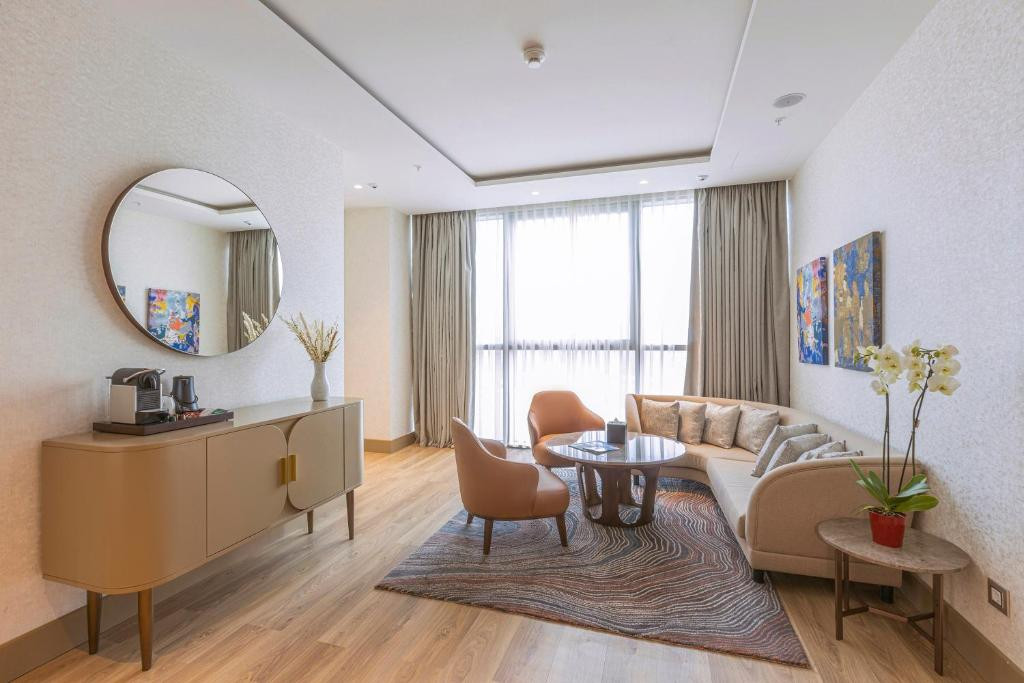- President Suite Xian — 280 кв. м, в трехкомнатном номере с видом на канал одна двуспальная кровать, диван в гостиной, рабочая зона и обеденная зона. Число гостей — до 4 человек
