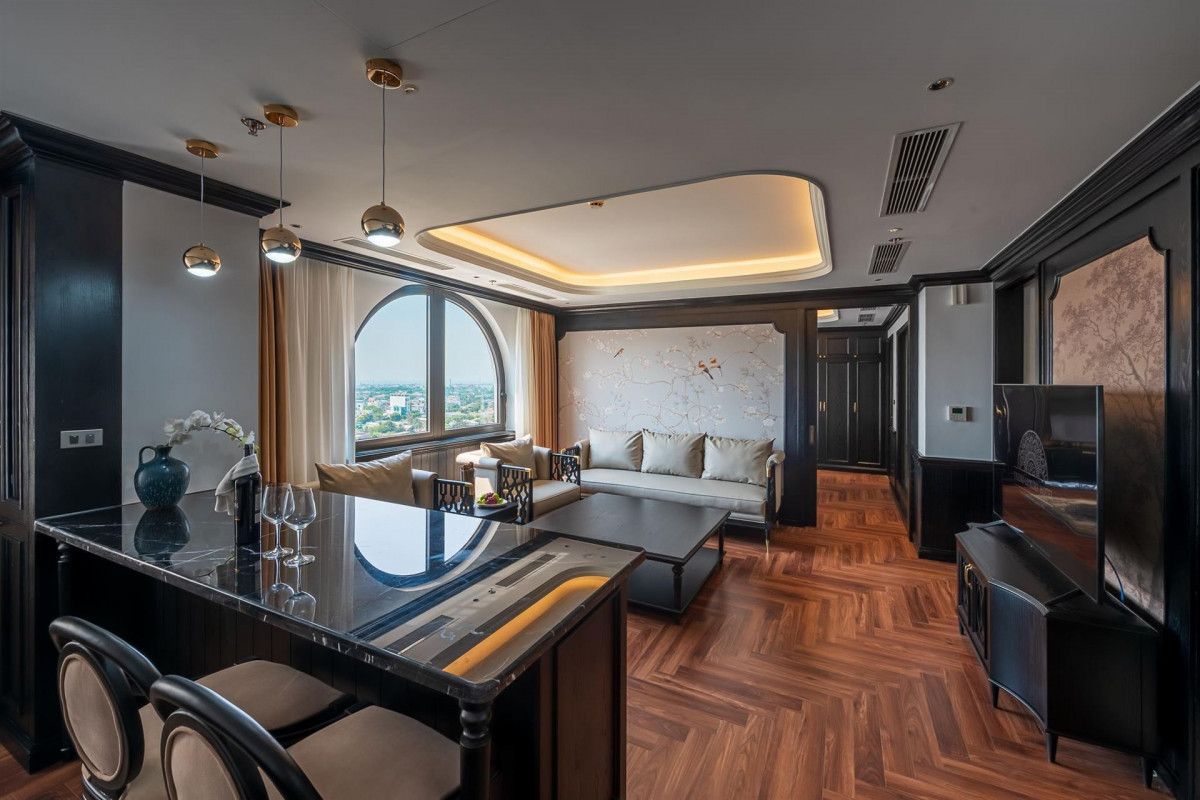 - Grand suite — 61 кв. м, 12 этаж, спальня, двуспальная кровать, межкомнатная дверь, гостиная, ванная комната, душ и ванна, джакузи, без балкона, есть окно, вид на город/море.